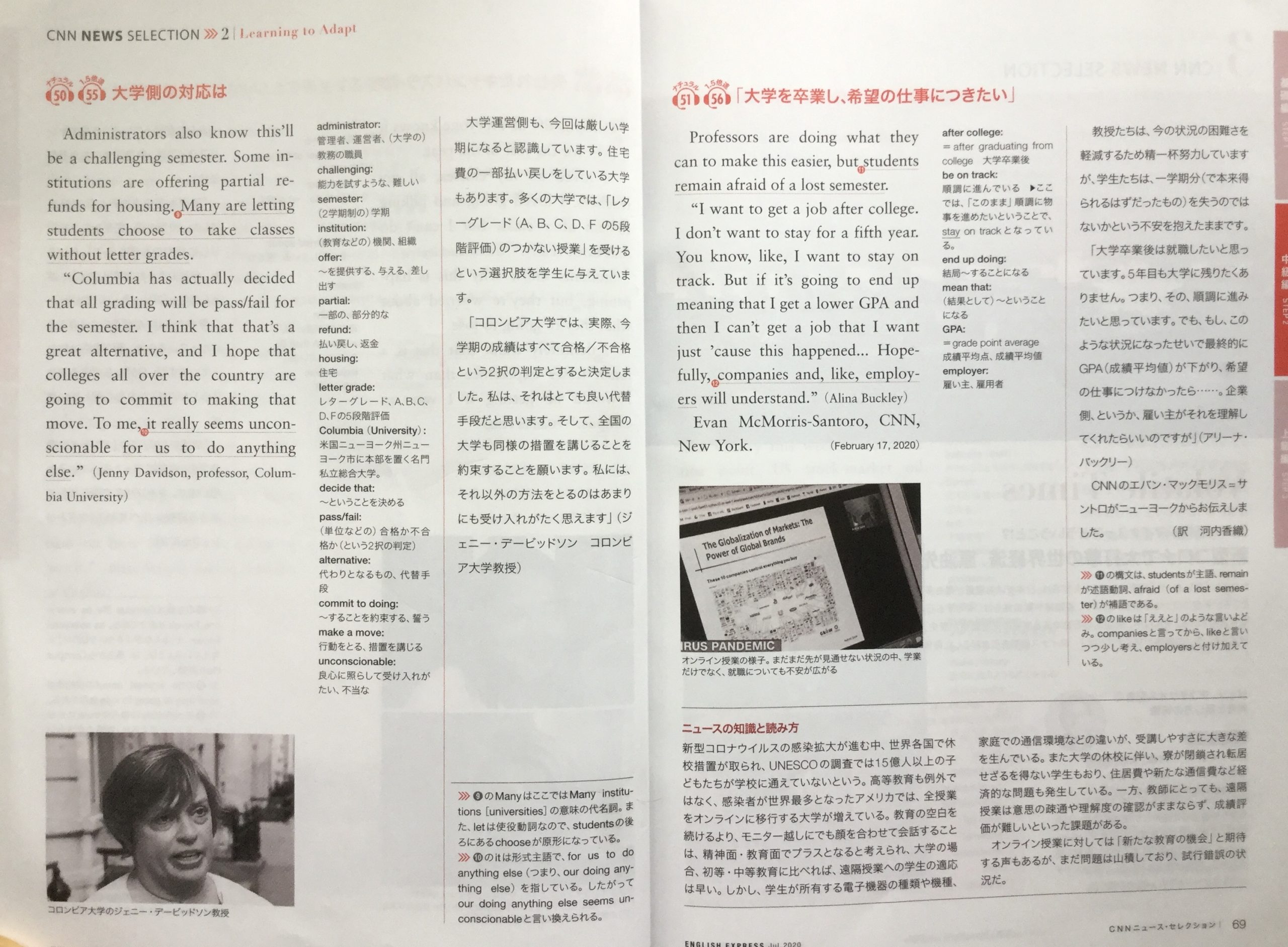 テーマ Learing to Adapt/CNN English Express7月号より、 新型コロナ感染拡大で進む「オンライン授業」その課題とは