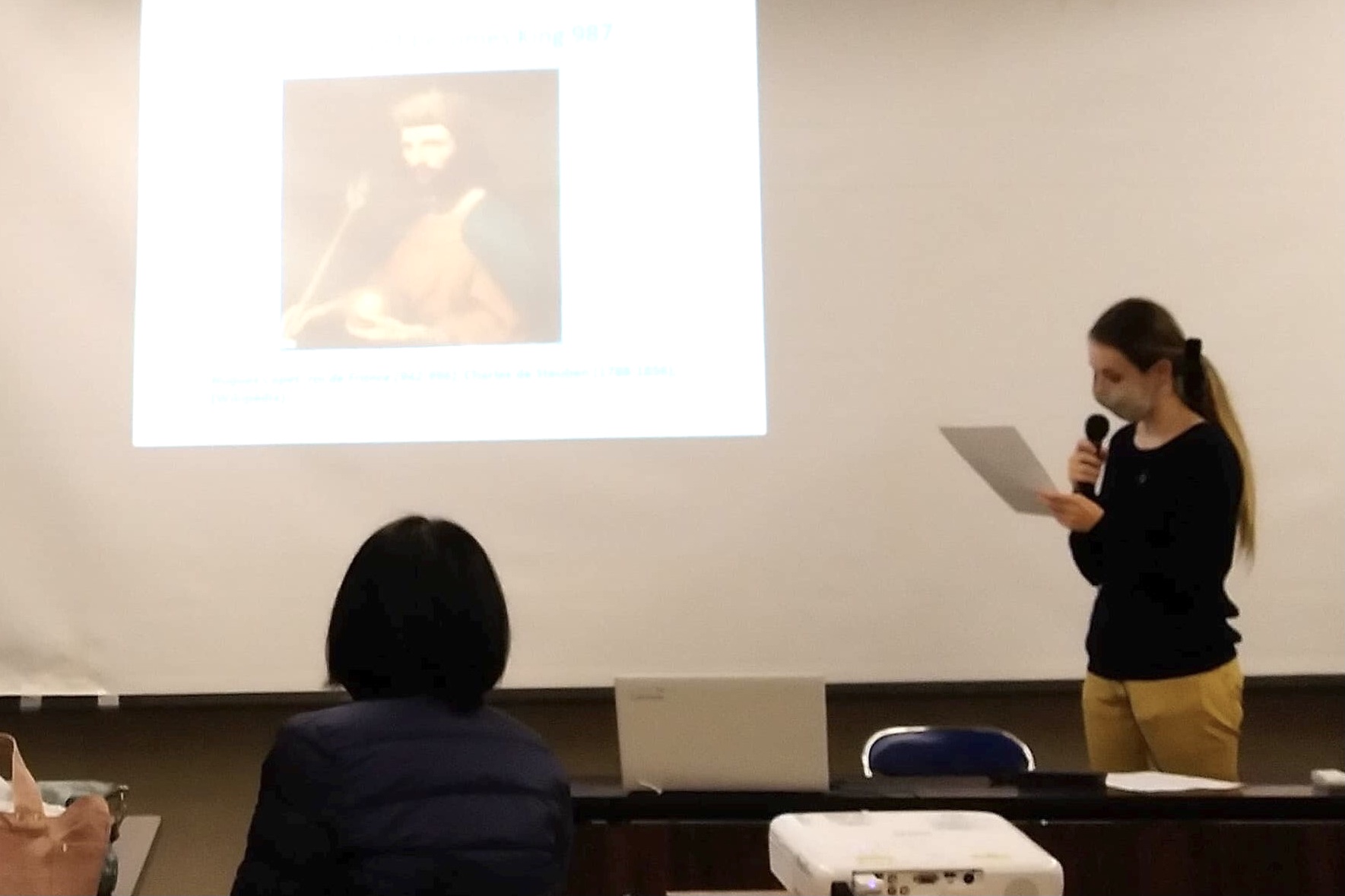 アドタイムでは、フランス女性のリリーさんが、フランスの歴史、文化、食、ファッションなどについて、色々とプレゼンしてくれて、興味深いものがありました。 紀元前のローマ帝国時代には、シーザーがフランスに住んでいたガリア人(ゴート族)を破って、ローマの植民地となり、紀元後に、ローマ帝国を破ってから、独立した王国を築いた話から、始まりました。そこから、歴史の話、王朝の建国(王様の話)、フランス革命(ブルジョア革命). ナポレオンの登場から、近代へと話が進みました。そして、ファッション、文化、食などの話、映画スター、文化人、歌手の話が盛り沢山で、フランスの文化と伝統は、日本よりも長く続いてきたのだと、実感出来ました。 その後は、リリーさんに各テーブルを回って頂き、フランスについて、色々と楽しいQ&A、話をして、楽しかったです。