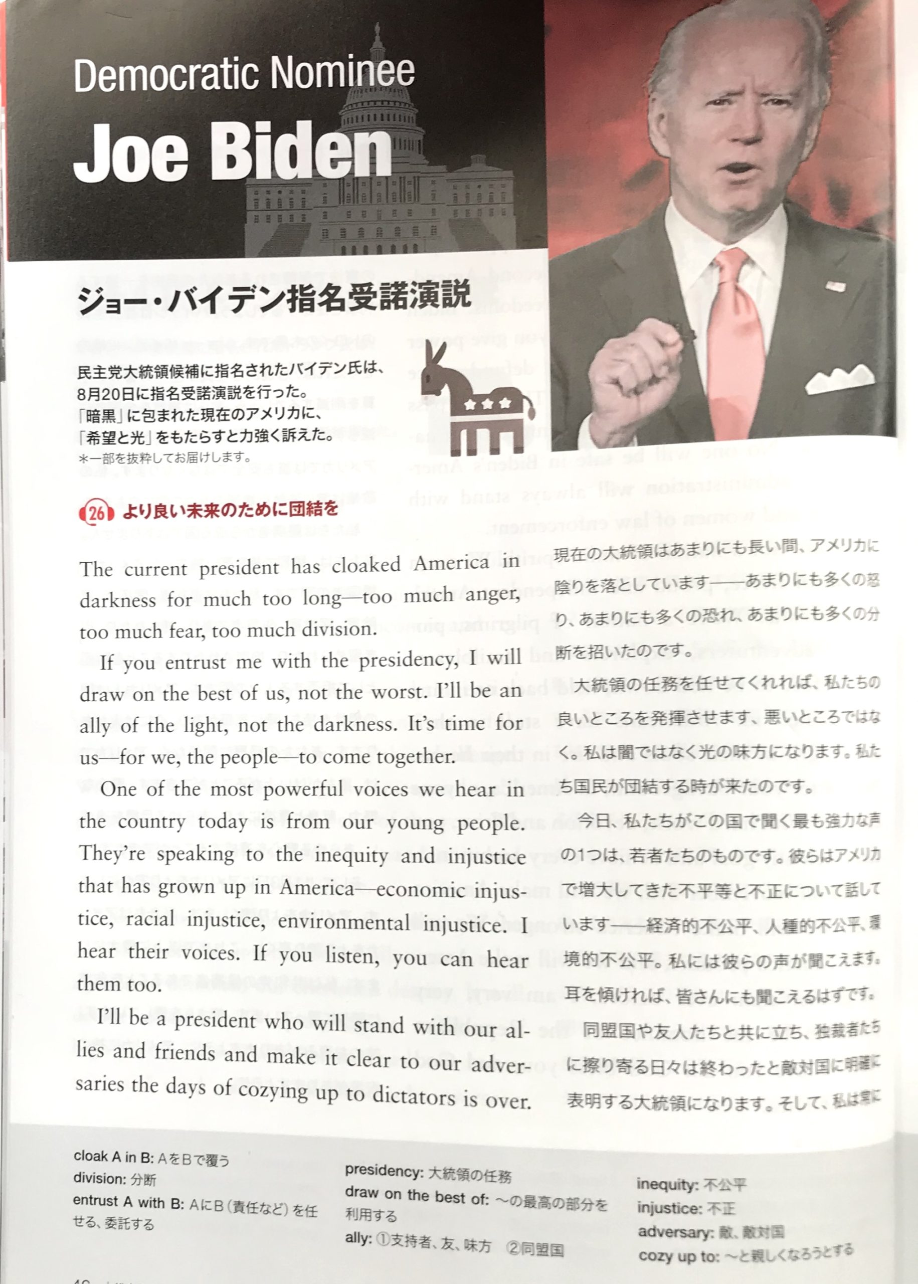 テーマ: ジョーバイデン指名受諾演説 (CNN English Express 11月号より)