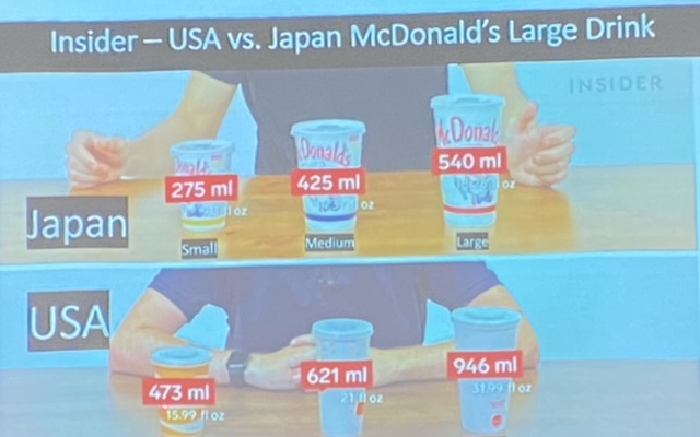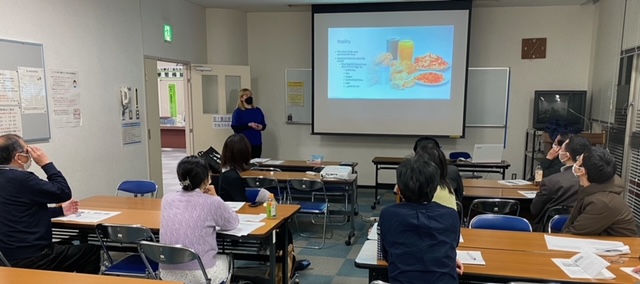 アメリカは第2次世界大戦で、食料難に陥ったため、戦後は豊かな農業生産を背景に、アメリカ人はボリュームの多い食を好むようになり、ファーストフードやバギーフードが流行るようになった。 現在では、貧困層には、手に入りやすいバギーフードはカロリーが高く、高価な新鮮野菜が少ない。コメ、パンなどは格安。また、学校給食もカロリーの多いもので、やはり、新鮮野菜は少ない。世界1位の農業国で、安く新鮮な野菜が買えない人が多いのは、皮肉な話ですね。日本の健康食が、米で流行るのは理解できます。 プレゼン後、シャイアンさんを囲んで、テーブル毎にフリートーキング。